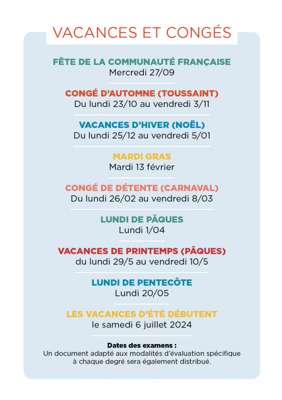 Le dépliant d'accueil et le calendrier sont disponibles en version papier dans le hall de l'école.