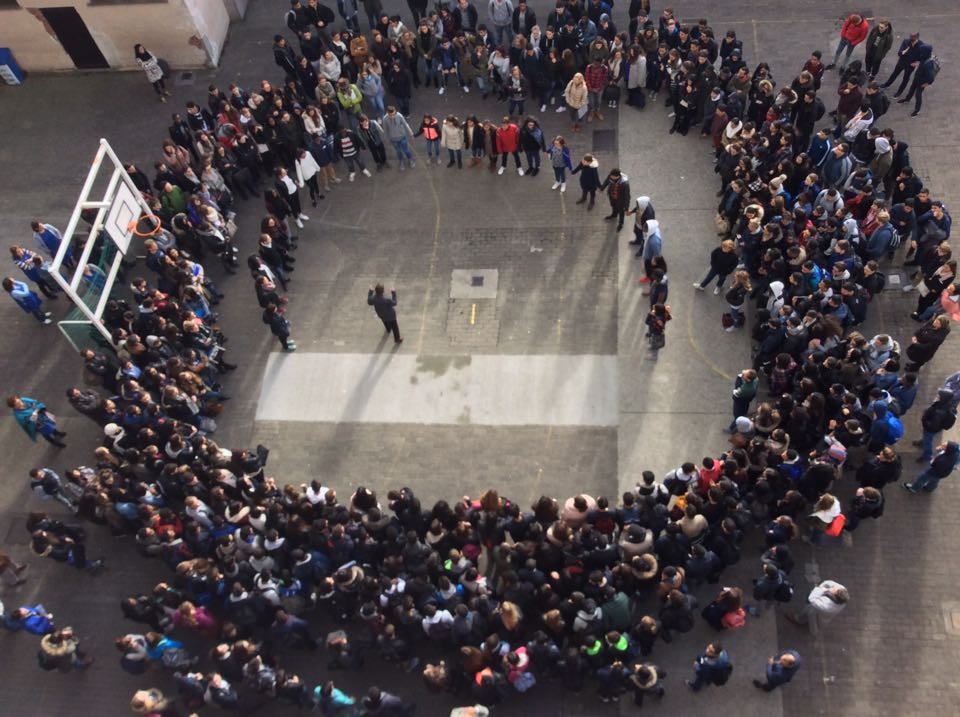L'Athénée Royal de Koekelberg a rendu hommage, à sa façon, aux victimes des attentats parisiens ce mercredi 18 novembre : réunis tous ensemble autour de la chorale de Mme Corsaro, professeur de musique dont voici le compte-rendu vidéo.