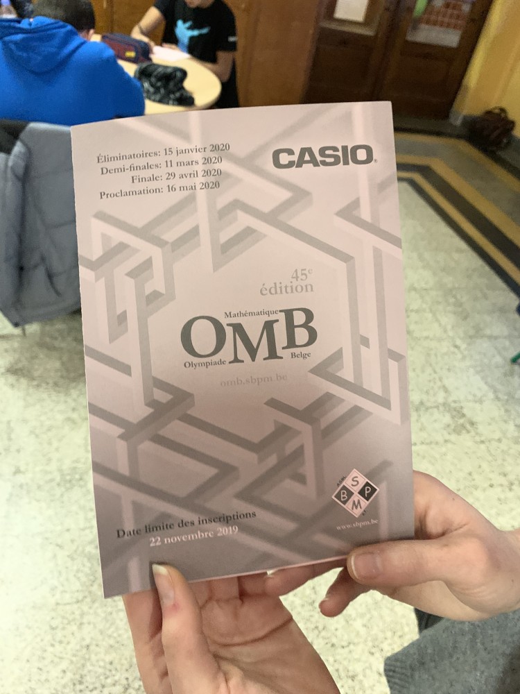 Première épreuve de la session 2020 de l'Olympiade Mathématique Belge, l'épreuve éliminatoire s'est déroulée ce mercredi 15 janvier 2020 de 13h30 à 15h00 dans les écoles participantes.