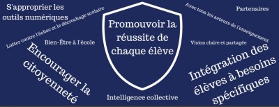 Plus précisément, le Plan de Pilotage définit les différentes stratégies concernant notamment la réussite des élèves, la lutte contre l’échec et le décrochage, l’appropriation des outils numériques, la promotion de la citoyenneté, la collaboration avec les familles et bien d’autres encore.