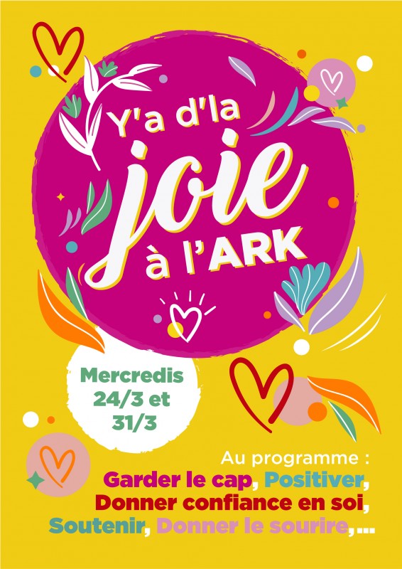 En remplacement, je vous propose l’organisation d’une opération « Y’ a d’ la joie à l’ARK ! » les mercredi 24 (1er degré et groupe B aux 2e et 3e degrés) et 31 mars (groupe A aux 2e et 3e degrés).