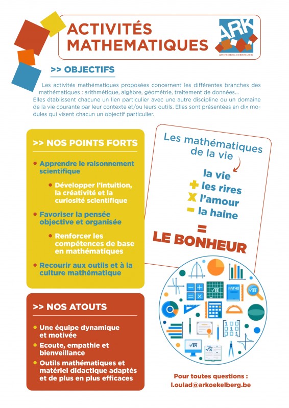 Les activités mathématiques proposées concernent les différentes branches des mathématiques : arithmétique, algèbre, géométrie, traitement de données ... Elles établissent chacune un lien particulier avec une autre discipline ou un domaine de la vie courante par leur contexte et/ou leurs outils. Elles sont présentées en dix modules qui visent chacun un objectif particulier.