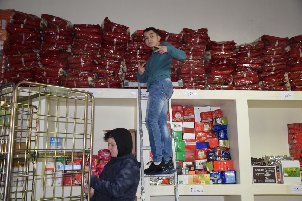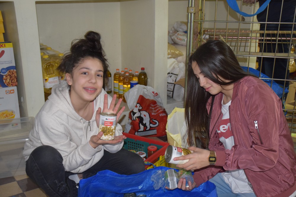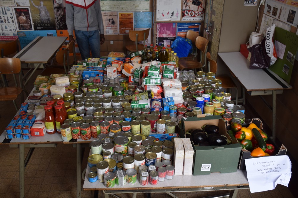 Ce lundi 25 mars, nous avons profité de la pause de midi pour aller déposer avec quelques-uns des (nombreux) élèves volontaires le fruit de notre belle récolte. Sur place, les élèves ont mis la main à la pâte pour remplir les stocks mais ont aussi eu l’occasion de côtoyer de plus près la réalité des migrants en ayant accès au refectoire où se présentent quotidiennement plus de 300 d’entre eux et en discutant avec les bénévoles présents sur place.
