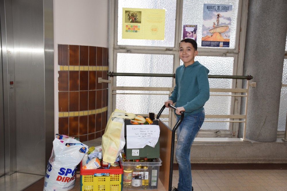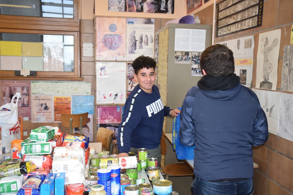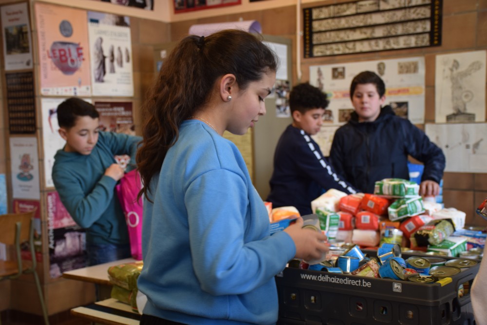 Suite à la volonté des élèves de se montrer solidaires, nous avons organisé dans ces classes une collecte de nourriture au profit de l’association Belgium Kitchen. Depuis 2015, cette association lancée par quatre jeunes Molenbeekois aide, nourrit et soutient les migrants.